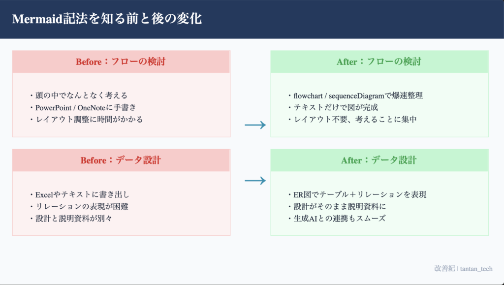 結論:Mermaid記法を知る前と後の変化