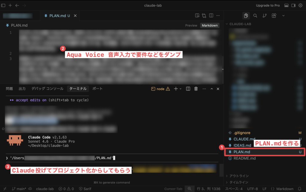 このTODO.mdやKNOWLEDGE.mdがあることで、後日再開するときも「どこまでやったか」が一目でわかる。Claude Codeに「前回の続きとか」「前と同じ感じ」と言えば、そのファイルを見て文脈をすぐに引き継いでくれそう。(人任せ)