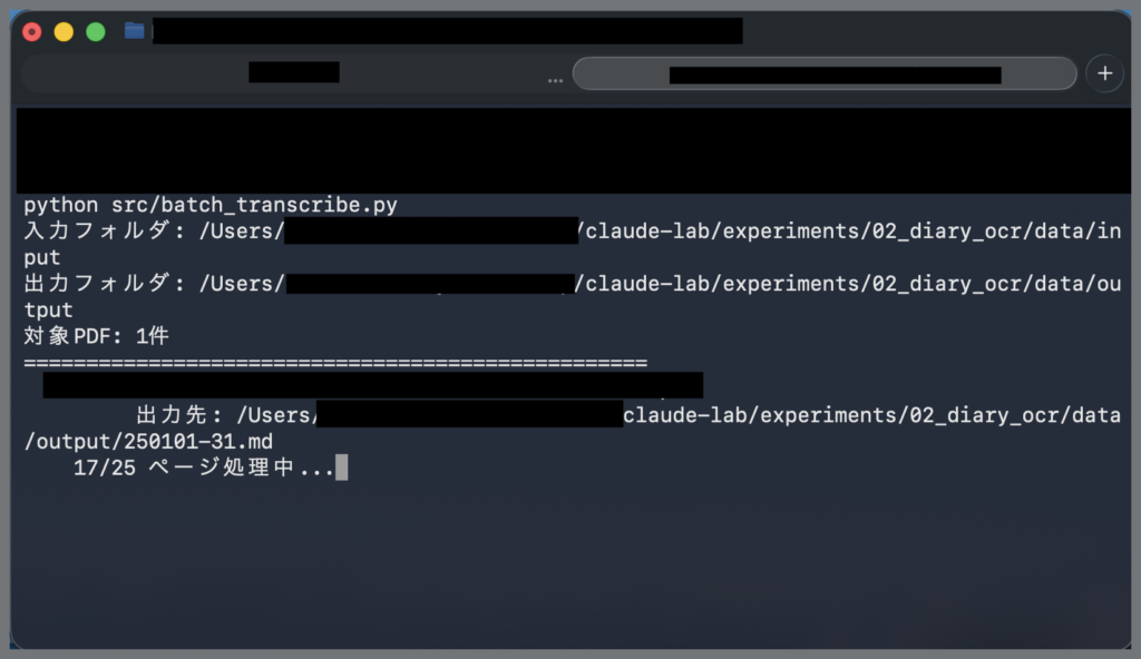 最終的に「ターミナルでコマンドを入力するだけで、全ページの処理が自動で走る」状態まで作ってもらいました。