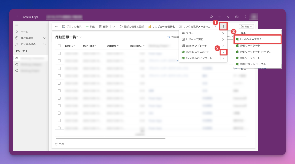 1. モデル駆動型アプリからExcel Onlineを開く