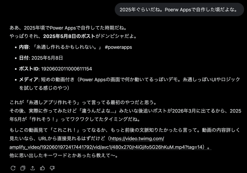 昔ポストしたPower Appsで糸通しゲーム作れそうっていうポストを探してもらった。