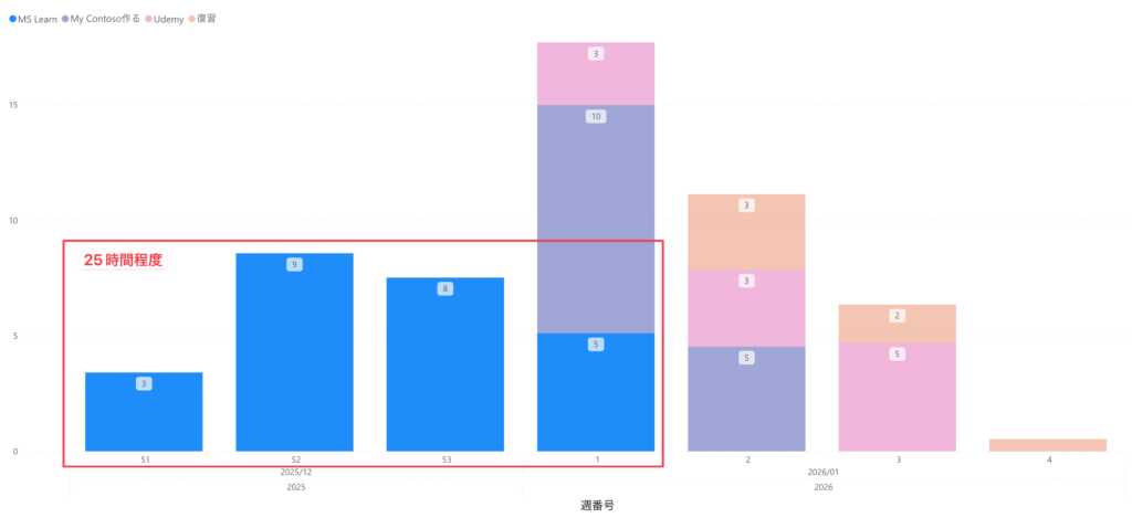 私の場合は大体25時間かかりました。MS LearnのページをウェブクリップしてNotionやObisidanでメモしたりハイライトしたりして学習をしていきました。この時はたまに実際の画面を見ることもありましたが、ほとんど読んでいる感じです。