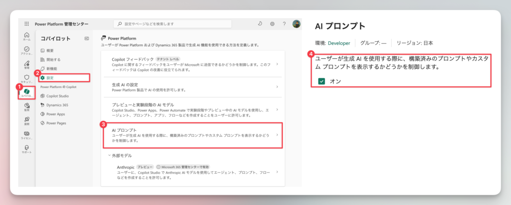 https://learn.microsoft.com/ja-jp/power-platform/admin/settings-features#ai-prompts