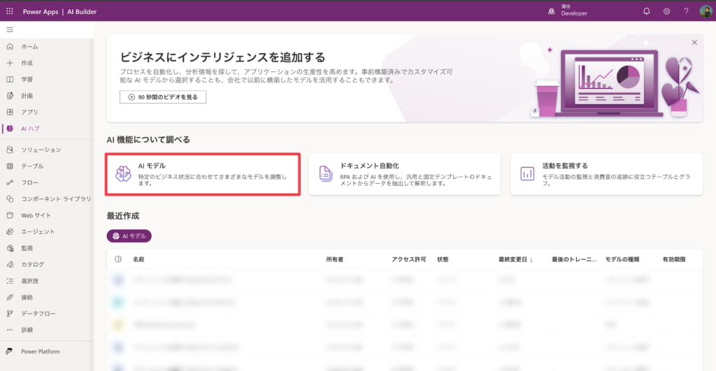 AIモデル内の「事前構築済みモデル」も「プレビュー」も使えました。「プレビュー」は別項目の設定を変更することで、制限ができました。ということは、設定をしても「事前構築済みモデル」だけは使えてしまうということなのでしょうか。